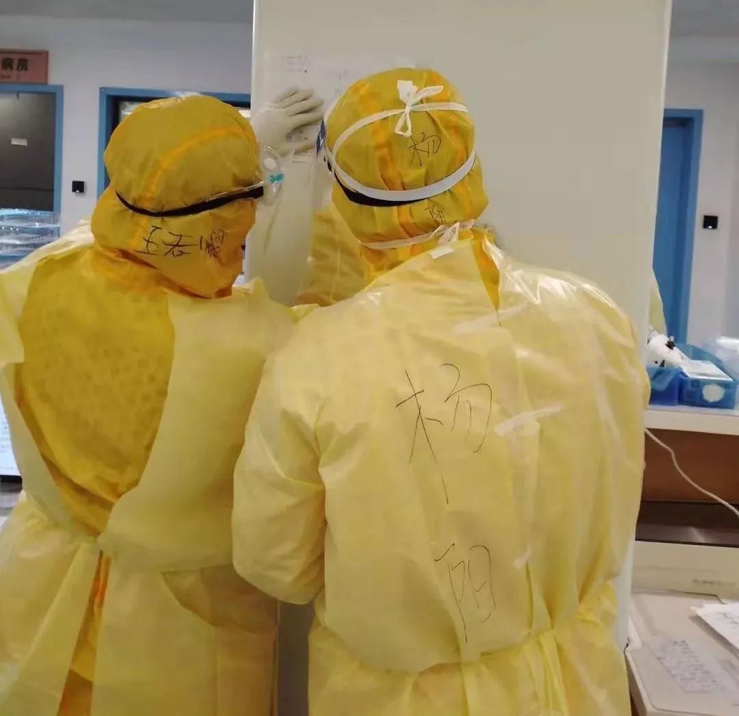 "保护我们的医务人员就是保护我们的同志和病人."在护理部吴新娟主任的统筹安排下,护理团队的管理实现了网格化和半军事化。119名护士分为两大组,一组负责一线临床病人的护理,另一组负责物资管理和安全监督,防护体系不断完善和严格执行。根据实际情况,医疗队制定了详细的病房隔离衣穿脱流程,具体到“穿脱必须两人检查”、“防护镜必须覆盖防护帽上沿”、“穿防护服前衣领必须竖起”。第一医疗队队长、传染内科成员刘教授对这种管理模式表示赞赏:“队员穿好防护服后,必须经过监督检查,否则不得进入病房。”